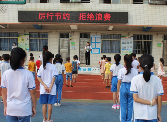 9月4日早上,開發區第五小學組織全體師生開展“厲行節約,拒絕浪費”主題教育活動啟動儀式,鼓勵師生們制止餐飲浪費行為,培養節約好習慣,形成社會聯動機制,小手拉大手,讓學生帶動家庭成員一起成為“光盤行動”的踐行者。