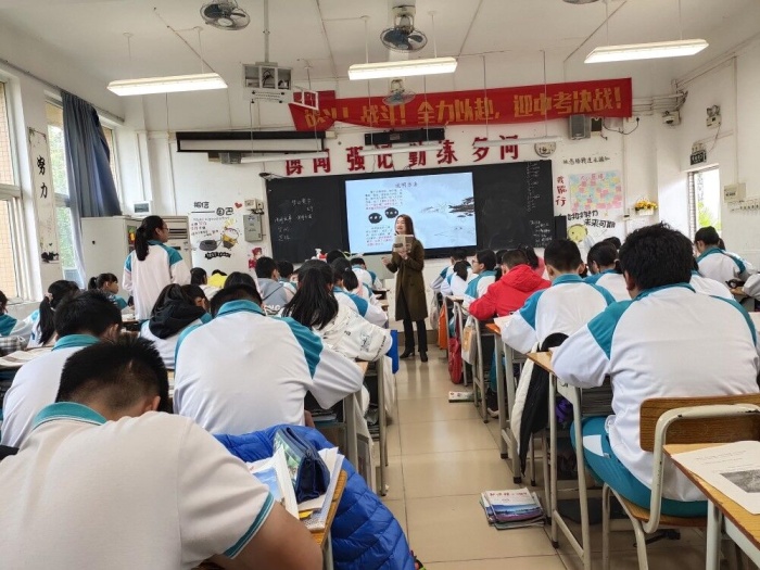 秉著公平公正的原則,本次教學比武率先在各科組內進行比賽和篩選,根據學科人數進行擇優推選參加全校教學比武賽。此次校賽分為為文科組和理科組,涵蓋了語文、數學、英語、道法、歷史、地理、生物、化學、物理、信息技術、體育科目。為確保比賽公開透明,教務處在賽前一天公布比賽內容和上課班級,這就需要每位參賽選手的專業素養和臨場應變能力。賽前,每位教師根據學科特點認真備課,深度解析教材。在課堂上,青年教師們自信登臺,他們的教學活動精心設計,充分利用多媒體,用生動幽默的語言,豐富的常識閱歷,積極引導學生自主學習,課堂形式多樣,促進了學生的學與思。