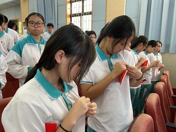 為慶祝建黨99周年,火炬二中于6月29日下午舉行了新團員入團儀式暨少先隊離隊儀式,通過“集體離隊”等學生自我教育的活動形式,幫助學生邁好“青春第一步”,“扣好人生中第一顆扣子”,從而使學生明確將要肩負的歷史和社會責任,培養開拓進取、奮發向上的拼搏精神,激發學生熱愛共產黨、熱愛共青團,熱愛少先隊的思想情感。