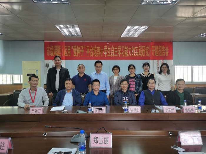 隨后,黃偉祥、吳錦開、陳明宏、謝柏祥四位專家對課題的研究價值、研究的準備和前期工作給予了充分的肯定,同時對課題的有效推進提出了改進和完善建議。吳錦開提出:課題的研究具有前瞻性,能促進智慧型校園的形成。黃偉祥主任肯定該課題能把握時代脈搏,利用新方法和新技術去突破老問題,既能培養學生的信息素養,也能提升教師的信息技術能力,希望課題組扎實研究,形成共建共享機制,基于大數據技術進行精準的評價,形成校本化和學科化的教學模式。陳明宏老師指出課題組要精準定位,利用愛種子平臺,進行培養學生自主學習的實踐研究,探究校本應用策和校本教學策略。謝柏祥校長認為課題組要做好愛種子平臺的教學方法與其他傳統教學方法區別研究,細化課題工作的管理,扎實地做好研究,大興研究學習之風,形成區域性的教學特色。