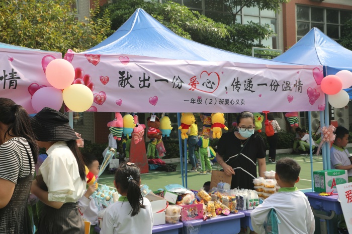 當天下午,該校近兩千名師生和數百名義工家長參與到活動中,操場上頓時成為愛心的海洋,熱鬧非凡。活動中,各中隊在各自陣地用帳篷搭建起一個個特色鮮明的愛心義賣小鋪,創意非凡的店名、引人奪目的廣告海報、琳瑯滿目的義賣物品,讓人應接不暇。各班級的小小銷售員們施展渾身解數,或是在大本營用動人的語言打動每個顧客,或是組成促銷小分隊游走于四處,采取“走出去”策略提高“營業額”。每個攤位都吸引了不少同學和家長,大家在不同的攤位中穿梭往來,買下自己喜愛的物品,并將錢投入愛心捐款箱中。沸沸揚揚的吆喝聲此起彼伏,一張張燦爛的笑容出現在現場各處,一聲聲爽朗的笑聲飄蕩在校園上空……義賣活動共持續了兩個多小時,不少攤位的物品在開始后不久便已銷售一空,共募得資金84220元。