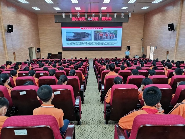 百年追夢,復興中華。為深入落實習近平總書記在學校思政課教師座談會重要講話精神,將習近平新時代中國特色社會主義思想扎實落地學校,加強新時代思政課建設,3月15日,火炬高技術(shù)產(chǎn)業(yè)開發(fā)區(qū)中心小學劉剛毅校長在學校學術(shù)報告廳為六年級的同學們上了一節(jié)《學黨史--黨的歷史我知道》思政課。