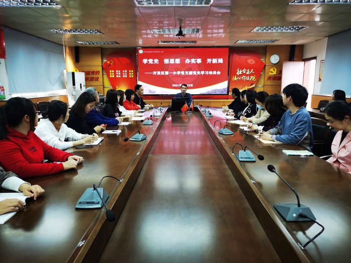 3月19日下午,開發區第一小學黨支部召開黨史學習教育動員會,黨支部書記、校長蔡長青同志作有關精神傳達并講話。全體教職工參加會議。