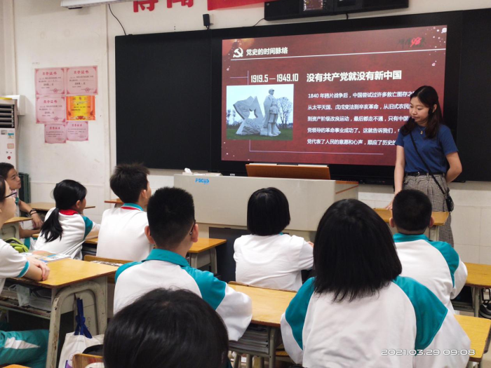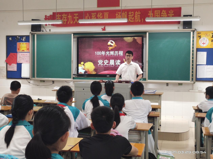 在早早讀中,班主任積極參與互動,通過講解一代代共產黨人艱苦卓絕的奮斗歷程,激勵中學生學黨史,知黨情,將個人奮斗目標與社會、國家奮斗目標聯系起來,做新時代厚德少年,以新面貌展現新作為。在各班營造了學史明理、學史增信、學史崇德、學史力行的濃厚氛圍。