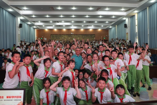 為引領大家認識聲音,領略科學魅力,陳教授圍繞“聲音是怎樣產生的、如何聽到聲音?真的有獅吼功嗎?”等幾個方面,用妙趣橫生的圖像信息,幽默風趣的科學語言,深入淺出的透徹講解,解釋了聲音的奧秘,為師生帶來了一場科普視聽盛宴。陳教授引用有力的數據與實例,從兩彈一星元勛錢學森,到創作《歡樂頌》的交響樂王子貝多芬,再到用觸覺“讀”世界的海倫凱勒,娓娓道來,無不滲透對同學們的情感教育,向孩子們傳遞著對正確的人生態度。會場氣氛輕松、活躍,學生問答積極踴躍,師生互動自然高效,高潮迭起,不時爆發出陣陣掌聲。活動最后,陳光南教授與學生親密合影。