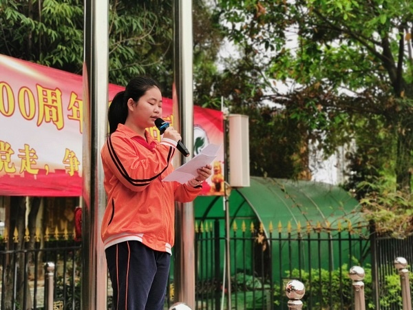在啟動儀式上,六(4)班余泳延同學帶來了熱情洋溢的讀書節啟動倡議書,她號召全體師生積極參與到讀書節中來,借讀書節的機會共讀紅色書籍,慶祝中國共產黨建黨100周年,同學共讀,師生共讀,親子共讀,讓大家一起學會讀書,讓滿園書香陪伴我們成長,讓紅色故事激勵我們前進。
