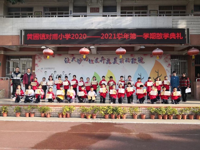 為了更好地總結對甫小學一學期的教育教學,表彰在各方面表現出色的優秀學生,調動全體學生的學習積極性,促進學校各項事業全面協調地發展,為實現“正面引導,鼓勵教育”的德育教育方針,2021年1月15日,對甫小學在操場舉辦了2020-2021學年度第一學期散學典禮暨期末總結表彰大會。