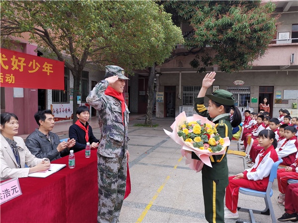 升旗儀式結束后,大隊輔導員梁毅強老師為同學們介紹今天的“特別客人”--校友現役軍人梁浩元同志。梁浩元同志,中國共產黨員,2013年9月入伍,服役于湖北武漢中國人民解放軍75310部隊,擔任班長一職,入伍以來,梁浩元同志嚴格要求自己,2016年參加湖北地區50年一遇特大洪水災害搶險救災任務,2019年參加世界軍人運動會開幕式保障任務,2020年參加武漢新冠疫情物資運輸保障任務,充分發揮班長的帶頭作用,高標準高質量完成部隊交付的各項工作任務,先后立“三等功”兩次,優秀士官兩次,嘉獎兩次。
