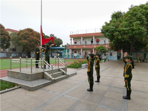 春意盎然,微風習習,2021年3月8日上午,黃圃鎮石軍小學全體師生井然有序,莊嚴肅穆地面對著國旗,唱起嘹亮的國歌,歌聲在校園中回蕩。