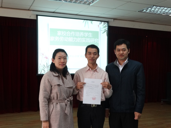 課題開題報告開始,首先鐘偉云老師為兩位課題主持人頒發立項通知書,接下來音樂課題主持人向英老師、德育課題主持人陳曉雄主任分別做開題報告。他們分別從課題研究的背景、課題界定,研究目的、研究內容、研究過程、研究預期成果等進行匯報。匯報結束后,到場的專家針對課題研究的思路、方法等提出建議,為課題的順利開展理清思路。
