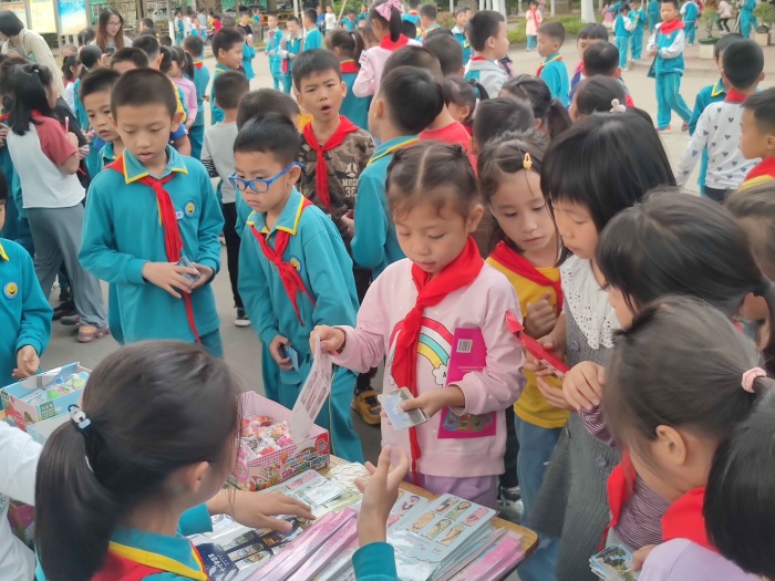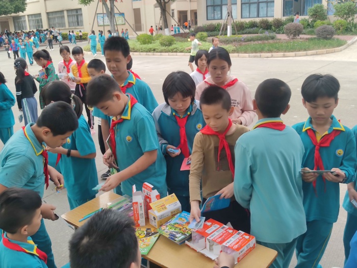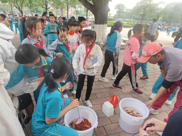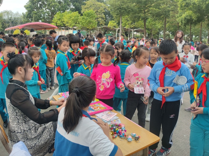 學生排著整齊的隊伍來到兌換場地,低年級在升旗臺前,中年級在教學樓前后座中間的空地上,高年級在綜合樓前。整個兌換過程緊張、有序,師生們都積極參與此活動。在兌換現場,孩子們拿著通過自己努力獲得的積分卡,在各個兌換區兌換到了心愛的小禮物,學生的臉上洋溢著開心的笑容。其中兌換烏龜、金魚的攤位深受學生歡迎,排起長龍。