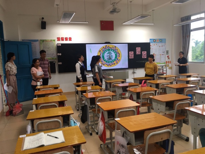9月28日下午4:30,五、六年級班主任在級組長梁景輝老師以及駐級行政的帶領下,首先來到六(4)班進行評比。六(4)班以“棕竹班”為建設背景,用棕竹為載體,開展讀畫講寫行五維一體的的特色班級——棕竹班。而六(3)班則以羅漢松為依托,以學生空間發展為目的而開展了以頑強拼搏為亮點的特色班級活動。