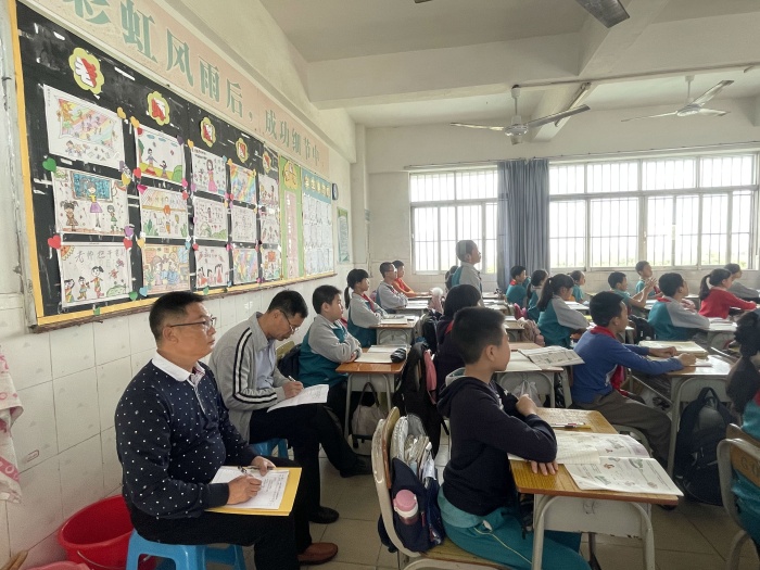 接著,評估小組隨機抽取班級深入課堂聽課,課后檢查教師聽課本和學生作業,查閱檔案資料,開展學生問卷調查和教師隨訪,查看校園文化、功能場室等。