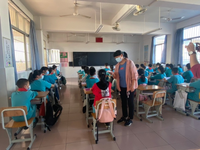 下午3:30點,演練正式開始,陸銳勛校長為本次演練的總指揮;本次分為4個主要的演練內容,第一:早上乘校車演練;乘車學生戴好口罩,學生之間前后保持1米距離排隊候車,校車跟車員按順序為學生測溫,體溫正常(低于37.3度)才允許乘車。第二:師生進校演練;師生佩戴好口罩,有序地排隊,然后依次測溫進校。如發現學生體溫異常,應急處置老師聯系衛生應急處置員,衛生應急處置員將體溫異常的學生帶到隔離室復測體溫,體溫是異常的應致電班主任,并按衛生應急處置員按流程規范處置。第三:食堂就餐演練;上午放學后,當班老師組織本班學生排好隊戴好口罩向食堂出發,原則上按低年級到高年級順序安排領餐餐,學生進入飯堂后,按前后相隔1米排隊領餐,取餐后回到各自的教室座位就餐。第四:午休測溫和上課出現異常應急演練;如有學生舉手報告身體不舒服,上課老師安排好其他學生自學任務后,給報告者測體溫,體溫異常的致電班主任,班主任相隔1米,帶學生到留觀室。班主任通知衛生管理員到留觀室處置,衛生管理員按流程規范進行處置。