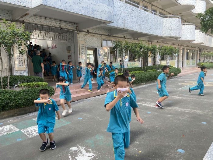 演練前,總務主任梁兆元老師對演練進行了精心的組織和周密的安排,詳細規劃了每個班級的集合區域以及樓層、走廊的看守老師。此外,梁主任還對全校師生進行了詳細的消防安全基礎知識講解培訓。下午3點45分,隨著消防警報的響起,還在教室上課的同學們在老師的指導下,按照應急預案,紛紛用手帕捂住嘴,彎著腰,沿著學校指定樓梯通道快速、有序地撤離到學校運動場的安全地帶。整個過程僅用了短短幾分鐘,做到了安全、快速、有序。接下來,開發區消防大隊的顧警官,結合了今天演練的情況,就如何報火警、火災的預防、火場自救及逃生方法、滅火器的使用等消防安全知識進行了講解;最后,民眾鎮消防中隊隊員現場指導師生們學習使用滅火器進行滅火。
