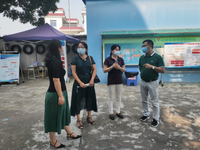 9月3日下午,中山市教體局組織科梁冠朵主任、管淑花副科長蒞臨民眾鎮新平小學進行2020秋季學期開學工作調研。梁主任和管副科長先聽取了陸銳勛校長、湯斌英副校長關于開學工作的匯報情況,并實地查看了家長接送區、學生等候區、臨時觀察點、心理室、課室、食堂等場所,向總務處梁兆元主任詳細了解校車、食堂就餐和防疫物資儲備等情況。