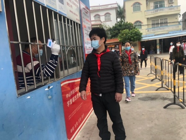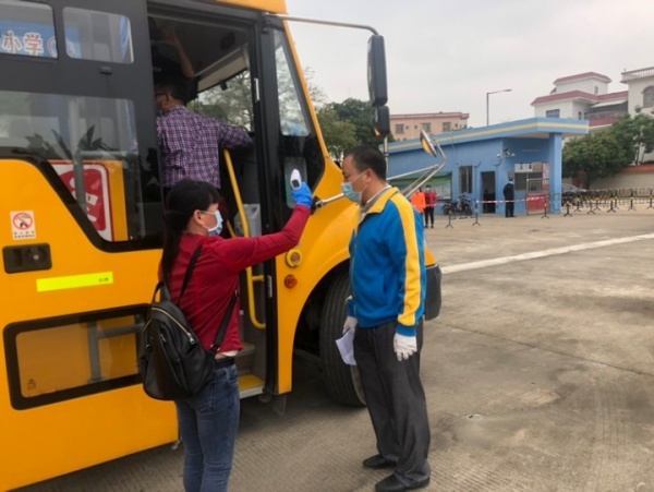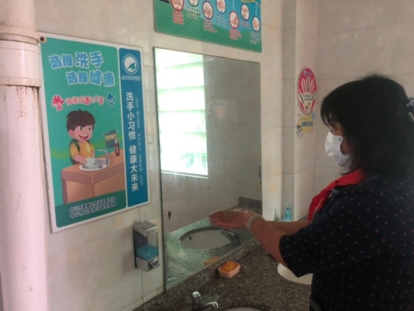 演練堅(jiān)持“演練即是實(shí)戰(zhàn)”的要求,落實(shí)落細(xì)各項(xiàng)措施。陸銳勛校長(zhǎng)為本次演練的總指揮。本次演練分為7個(gè)場(chǎng)景。場(chǎng)景一:排隊(duì)進(jìn)入校門。24個(gè)班主任扮演學(xué)生,分2路縱隊(duì)從刷卡口進(jìn)入。場(chǎng)景二:監(jiān)測(cè)體溫,學(xué)生排成2路縱隊(duì),馮培有、吳宇恒、負(fù)責(zé)測(cè)量學(xué)生體溫,體溫正常方可入校。學(xué)生間隔1米排隊(duì)依次接受檢測(cè);體溫正常者直接回教室,不要停留。假如發(fā)現(xiàn)有學(xué)生出現(xiàn)發(fā)燒癥狀(體溫37.3℃)值日行政馬上請(qǐng)她到臨時(shí)觀察室休息,通知該班主任打電話叫家長(zhǎng)把孩子送到民眾醫(yī)院發(fā)燒門診部就診。場(chǎng)景三:課室上課,學(xué)生到班后,班主任對(duì)學(xué)生詢問(wèn)“三史”,確認(rèn)無(wú)異常后,前往課室準(zhǔn)備上課。在上課期間發(fā)現(xiàn)學(xué)生提出身體不適,經(jīng)簡(jiǎn)單詢問(wèn)和測(cè)量體溫,如有發(fā)燒立刻打電話給梁兆元,曾國(guó)恒帶學(xué)生離開(kāi)課室,到臨時(shí)觀察室。對(duì)全班學(xué)生逐一進(jìn)行體溫檢測(cè),確認(rèn)均無(wú)異常后,由上課老師帶領(lǐng)學(xué)生由疏散專用通道離開(kāi),到備用課室上課。梁兆元通知消毒員對(duì)課室周邊及專用通道進(jìn)行消毒處理。場(chǎng)景四:臨時(shí)觀察室,吳文興由專門通道將身體不適的學(xué)生帶到臨時(shí)觀察區(qū),用水銀溫度計(jì)進(jìn)行腋下測(cè)量該生體溫,發(fā)現(xiàn)確實(shí)偏高,立刻致電班主任并由班主任聯(lián)系家長(zhǎng)在校門口等候,接該學(xué)生前往民眾醫(yī)院看病。假如學(xué)生有嘔吐,由曾國(guó)恒老師處理嘔吐物。梁兆元通知消毒員對(duì)臨時(shí)觀察區(qū)進(jìn)行消毒處理。場(chǎng)景五:學(xué)習(xí) “七步洗手法”,1、所有班主任回教室坐好,由張容冰教大家學(xué)習(xí)“七步洗手法”。2、所有班主任扮演學(xué)生上廁所后洗手。場(chǎng)景六:學(xué)生上下樓梯,學(xué)生靠?jī)蛇呌行蛏舷聵翘荩g隔1米,后面的同學(xué)排隊(duì),間隔1米。場(chǎng)景七:學(xué)生上體育課,1、學(xué)生分批在教室門前排兩路縱隊(duì),間隔4塊地板磚,整理好隊(duì)伍后有序的向運(yùn)動(dòng)場(chǎng)走去,接著第2批。