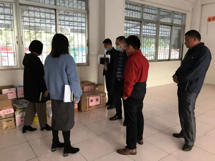 鎮教指中心領導重點了解學校教師辦公室、學生課室、學校食堂以及學校各功能室的消毒、衛生等防疫情況,實地查看了物資儲備室等場所設置,對民眾中學在疫情防控期間的科學防控措施進行了細致指導,并對民眾中學安保系統及各項臺賬、師生摸排、物資儲備等情況進行了詳細檢查。同時,胡留全校長向黃海文主任匯報了民眾中學師生在日常學習生活中,應對疫情的防控工作。包括成立專門疫情防控工作領導小組、每天分級分班對全校師生進行健康情況和去向進行匯總并上報、利用教師工作平臺和班級家長通訊平臺每天進行防疫的宣傳等。