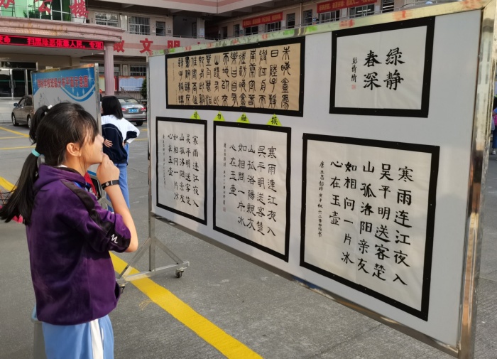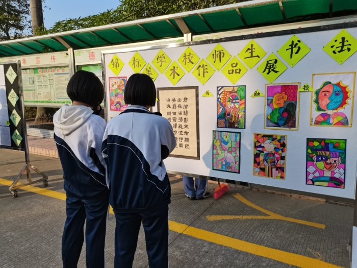 據(jù)悉,此次活動旨在傳承中華優(yōu)秀傳統(tǒng)文化,豐富校園文化生活,激發(fā)學(xué)生的創(chuàng)作熱情,提高學(xué)生的審美能力,充分展現(xiàn)錦標(biāo)學(xué)校素質(zhì)教育改革和發(fā)展的系列成果。本次師生書畫展示活動在學(xué)校辦公樓一樓拉開序幕。展覽現(xiàn)場氣氛濃烈,一幅幅精彩生動的書法、繪畫、剪紙等作品吸引眾多師生前來欣賞,成為學(xué)校一道靚麗的風(fēng)景線。 此次展覽作品內(nèi)容豐富、形式多樣。有的描繪偉人故里中山市的優(yōu)美環(huán)境;有的描繪祖國大好河山的秀麗風(fēng)景;有的臨摹先賢大作,蒼勁雄渾,有模有樣.......這些優(yōu)秀的書法繪畫作品不僅展示了錦標(biāo)學(xué)校師生卓越的才藝,還營造了濃厚的書香氛圍、豐富了師生們的課余文化生活,不僅展現(xiàn)了全體師生的高雅藝術(shù)情操和良好精神風(fēng)貌,更體現(xiàn)錦標(biāo)學(xué)校多年來始終倡導(dǎo)并努力實(shí)踐學(xué)生“德、智、體、美、勞”全面發(fā)展觀念的豐碩成果。。