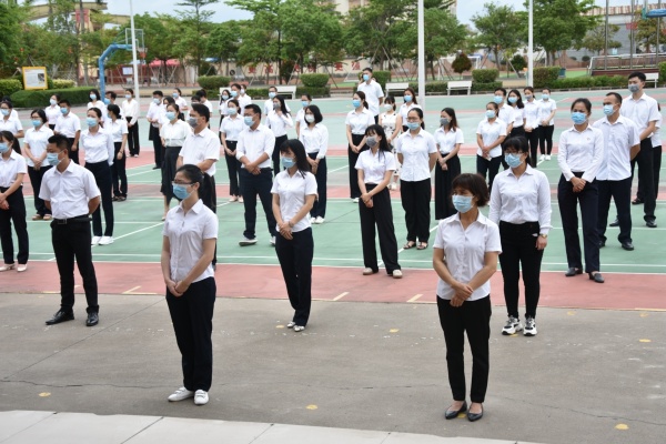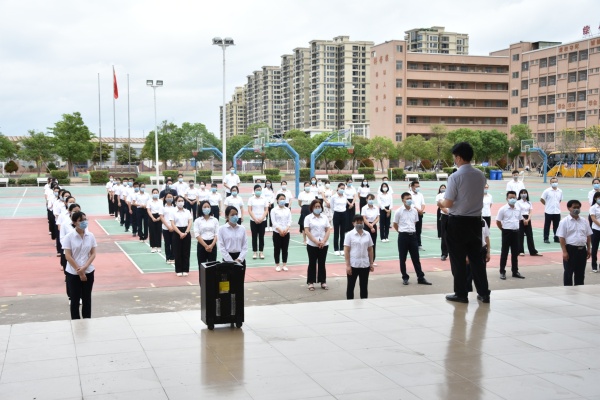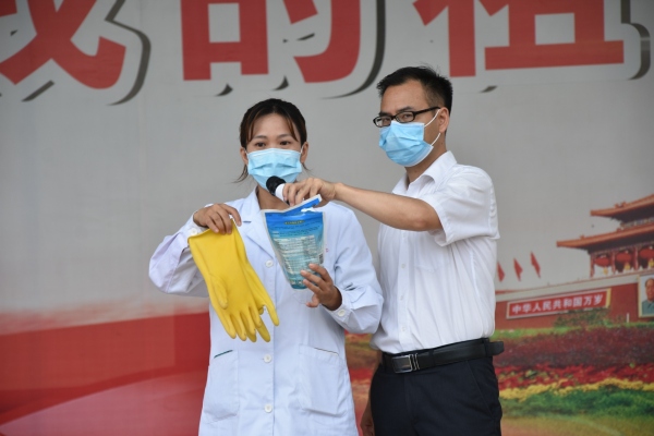 在本次演練開始前,錦標學校黃元感校長、分管安全衛生工作的陳德亮主任先后進行了動員講話。黃校長強調,所有參演人員思想上要高度重視,嚴肅認真,從整體式體會掌握演練流程,認真領會演練的目的,明白自己的工作任務和參演角色、規定動作,保證參與排練預演,遵守演練時間安排,確保成效,為正式復學復課工作積累經驗、奠定堅實基礎。陳主任要求,所有參演人員要切實做到“六個到位”和“六個不準”。這既是本次演練的要求,也是學生復學復課后的一段時間內的行為規范,務必牢記并嚴格遵守。“六個到位”即:防護到位、消殺到位、通風到位、行為到位、監控到位、宣傳到位;“六個不準”即:不準串位、不準串室、不準串樓、不準喧嘩、不準外出、不準傳謠。