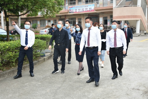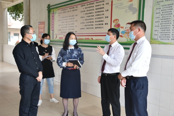4月26日下午,民眾鎮鎮長黃聲群來到錦標學校檢查學生返校復學準備工作,民眾鎮教育事務指導中心副主任梁冬梅、鐘偉云老師等陪同檢查。