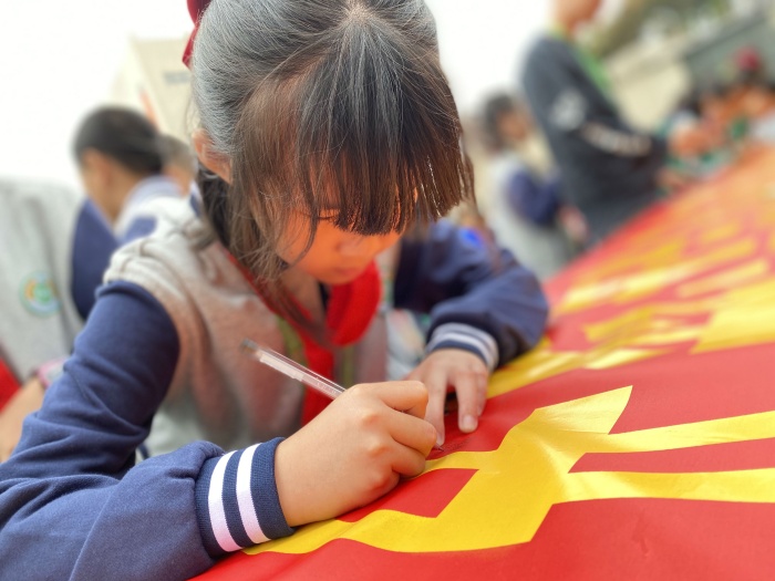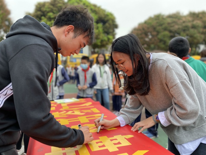 宣誓束后,各班主任老師帶領(lǐng)5位同學(xué)進行簽名留念。