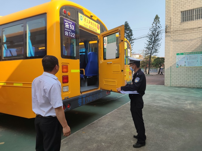 為進一步加強新學(xué)期校車安全管理工作,及時消除校車安全隱患,2月20日下午,民眾鎮(zhèn)交警大隊何警官帶隊一行到中山市民眾新徽學(xué)校開展校車安全大檢查,全力加強校車安全管理。