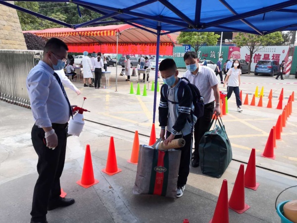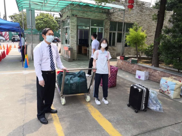 為了使初三和高三學生錯峰返校,學校將初三學生的返校報到時間定為下午13時到15時,但中午12時30分左右,已經可以看到有零星的返校心情較為急切的學生和家長拖著行李在校門口周邊立等,而此時,負責相關工作的老師尤其是班主任們也已經開始緊鑼密鼓的準備。