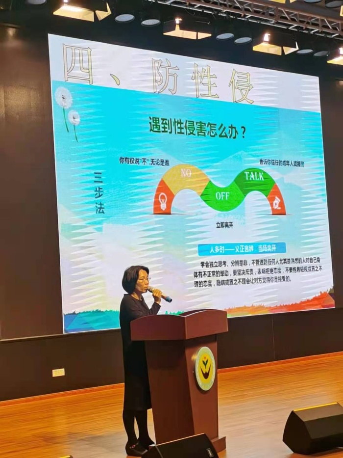 恰逢學校召開家長會,主持人謝錦霞主任又就性侵問題向家長們提出注意事項。特別是當受到傷害的時候教會孩子第一時間告知家人、朋友、老師等,無論是誰,孩子都要學會說“不”。