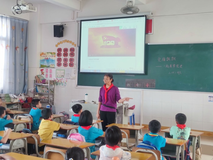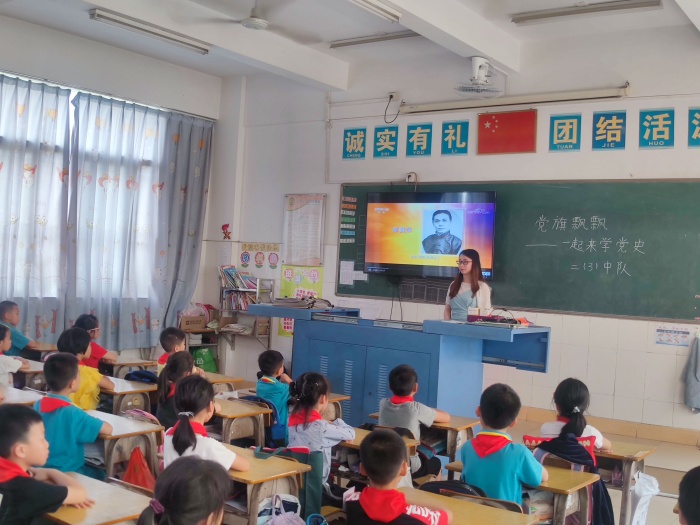 隊活課上,中隊輔導(dǎo)員通過學(xué)習(xí)強(qiáng)國的黨史百年頻道,讓隊員們認(rèn)識了黨旗、黨徽,知道了黨的全稱、黨的宗旨,了解中國共產(chǎn)黨百年來的艱辛歷程和豐功偉績。讓隊員們深切體會到中國共產(chǎn)黨是偉大、光榮、正確的黨,并深刻感受到自己的責(zé)任與使命。引導(dǎo)隊員們厚植愛黨、愛國、愛社會主義的情感,堅定隊員們更好地銘記先輩足跡,為祖國繁榮昌盛付出努力的信念!大家紛紛表示,要沿著黨的足跡,勤奮學(xué)習(xí),從小立志聽黨話,跟黨走,努力成長為能夠擔(dān)當(dāng)民族復(fù)興大任的時代新人。