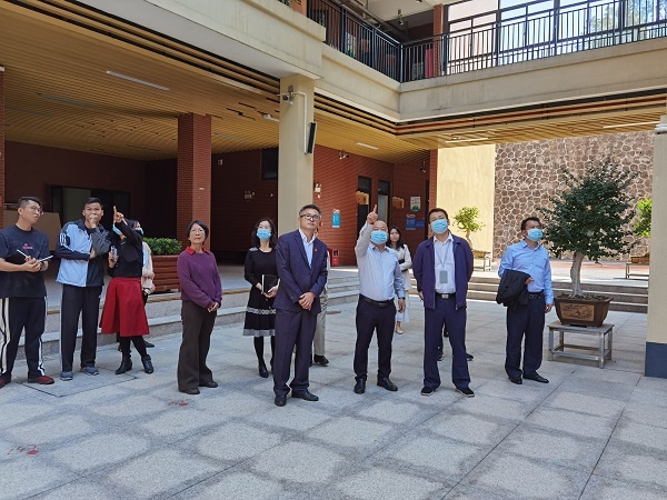 在何校長的陪同下,領導們實地查看了學校新學期校容校貌,并到田徑場、體育館等功能場室進行視察。在詳細了解學校疫情防控、開學準備、安全管理、教育教學準備等有關工作后,領導們充分肯定了馬嶺小學規范有序的開學工作,并就學校校舍擴建規劃、招生情況、未來教育發展及面臨的問題進行現場指導。