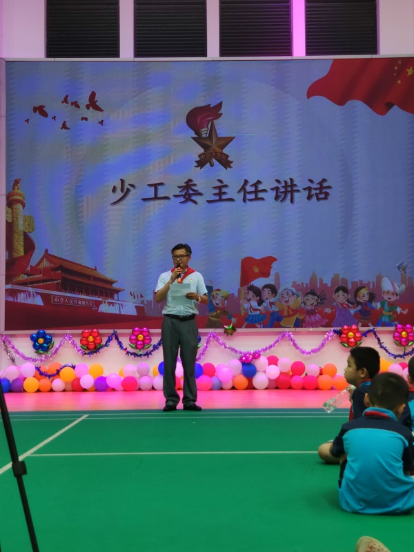 上午10點,全校師生在體育館開展“迎接少代會、爭做好隊員”“六一”主題教育活動。活動中,隊員們匯報了“廣東紅領(lǐng)巾致敬逆行先鋒”活動成果,有的隊員表演了《預(yù)防病毒拍手歌》,有的隊員展示了“同心戰(zhàn)疫”繪畫作品,接著進(jìn)行了最激動人心的“抗疫小衛(wèi)士章” 頒章活動以及同學(xué)們期待已久的“六一”文藝匯演。