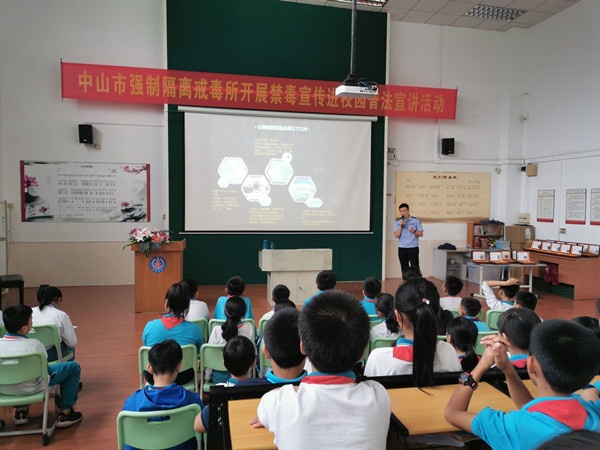 為加強青少年禁毒教育,引導青少年認識毒品危害,有效預防青少年涉毒違法犯罪,10月27日下午,中山市強制隔離戒毒所走進北臺小學,為師生們開展了以“拒絕毒品,珍愛生命”為主題的禁毒宣傳進校園普法宣講活動。