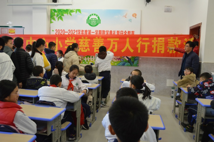 防疫知識和交通安全知識宣講完畢后,為深入貫徹習近平新時代中國特色社會主義思想,積極響應中山慈善萬人行活動的倡議,弘揚中華傳統美德,營造互幫互助互愛的良好氛圍,培養學生樂于奉獻的美好品質,學校大隊部開展了2021年“慈善萬人行”捐款活動。全體教師率先垂范,將飽含愛心的捐款投入捐款箱內。接著各班的學生排隊依次捐款,一份份愛心伴隨著一筆筆善款流入捐款箱。在全體師生的支持下,本次活動共籌得善款30534.40元。