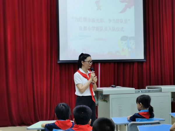 最后,在主持人的帶領下,全體隊員進行了宣誓和呼號。同學們的聲音響徹云霄。自此,良都小學增添了三個中隊的隊員!