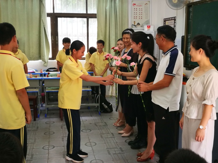 9月10日,良都中學簡樸溫馨的教師節慶祝活動從清早的第一縷芬芳開始。朗朗書聲驅散晨檢的慵懶之時,良都中學的行政領導和志愿者同學們早已奔走于辦公室和教室,為敬愛的老師們獻上一束鮮花,道上一聲“節日快樂”,嬌艷的花瓣映襯著老師喜笑顏開的笑臉。
