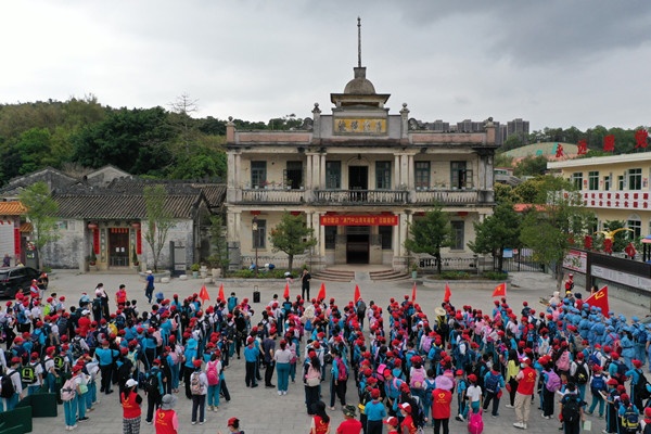 接著,同學(xué)們向目的地——劉廣生故居前進(jìn)。各中隊奮勇爭先,力爭先行到達(dá),士氣高漲。來到劉廣生故居參觀學(xué)習(xí),更加深了對中山本土革命歷史的了解。
