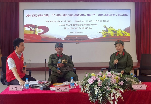 ——南區街道黨史教育百姓宣講暨“紅色印記”南區黨群故事分享活動到馬嶺小學發布時間:2021-04-07 12:59 信息來源:本網站 瀏覽次數:0