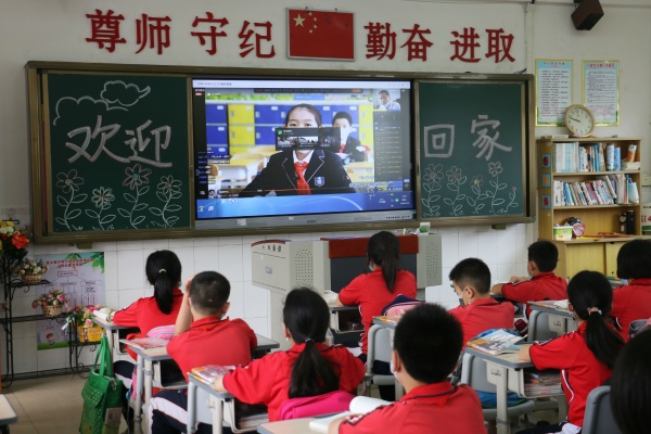 早上8點20分,一個簡單的開學典禮在升旗儀式中拉開序幕,激昂的國歌震動整個升輝小學。接著,升輝小學呂鑒添校長和同學們進行了一次近距離的開學教育,通過呂校長的講話,學生們懂得了今日的幸福來之不易,沒有所謂的和平年代,只不過是有人為我們負重前行而已,同時也激發了孩子們努力學習,積極向上的決心。緊接著,德育處黃永釗主任也給孩子們帶來了開學大禮包--學校防疫指南,黃主任通過釘釘直播的方式,給孩子們進行防疫知識講授,以及在學校生活中要注意的事項,同學們都能安靜、懂事并聚精會神地觀看學校播放的防疫視頻和防疫感人故事。最后,班主任組織了同學們熟悉班級的活動場所、行走的樓梯、以及放學路線,學生在老師們的帶領下認真熟悉新的校園要求。