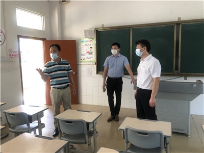 5月8日下午,根據《關于開展中山市2020年春季學期學生返校疫情防控第二、三批學校復檢、驗收工作的通知》精神,南頭鎮紀委書記余漾、黨委委員薛焯明、副鎮長肖彥余、黨政辦副主任李純華等南頭鎮返學工作領導小組到升輝小學對學生返校疫情防控第二、三批學校工作進行預檢,升輝小學全體行政陪同預檢。檢查組重點檢查校園疫情防控物資保障、防疫制度及防疫宣傳教育落實等情況,并對教學樓、校門口、辦公區、校醫室、隔離留觀室等場所進行檢查。余漾同志重點強調,疫情防控的物資必須得保障到位,各個場所也要按照標準布置好相關的內容;薛焯明同志也提出了兩點要求:一是學生返校各項工作必須認真落實到位,責任到人,保證返校復學工作順利開展;二是注重師生的心理健康,對個別心理個案要建立一檔一冊,發現問題及時處理,保障師生的身心健康。
