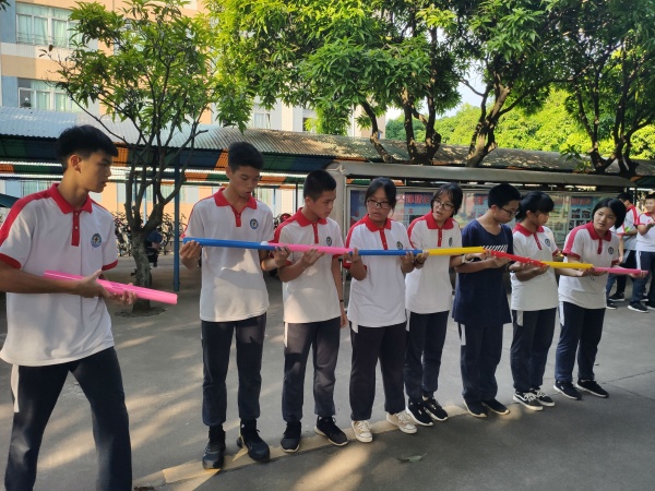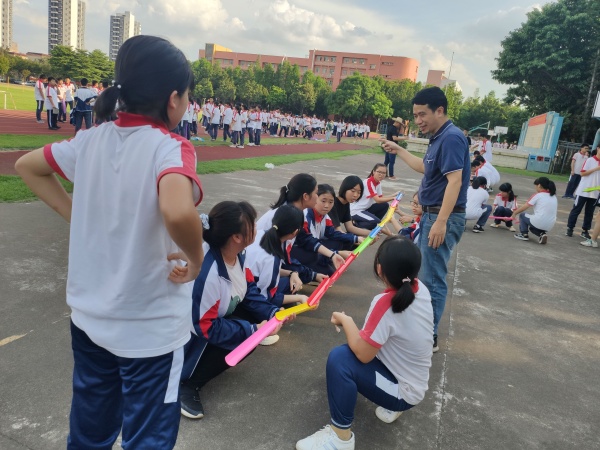 首先,初三年級(jí)的學(xué)生們?cè)诎嘀魅蔚膸ьI(lǐng)下,懷揣期待與熱情,從教室下到操場(chǎng),在跟班老師和班干部的協(xié)助下,以班級(jí)為單位分四組開展“珠行萬里”、“夾板接力賽”活動(dòng)項(xiàng)目。活動(dòng)由此拉開了序幕,妙趣橫生的比賽環(huán)節(jié)營(yíng)造了輕松愉快的氛圍,也讓學(xué)生們緩解緊張情緒,盡情地投入到活動(dòng)中來。
