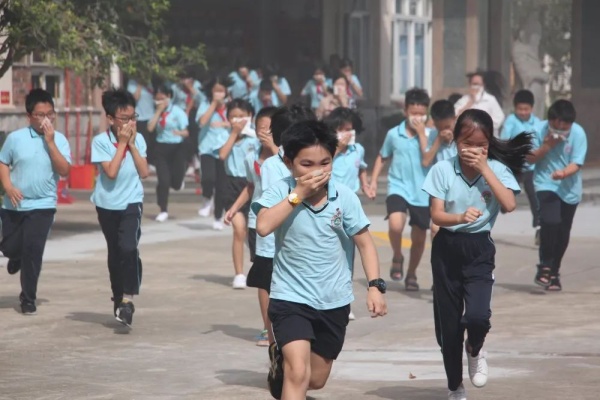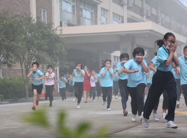 此次消防演習(xí),是在學(xué)生完全不知情的情況下舉行的,讓活動(dòng)的實(shí)際效果更加明顯。8時(shí)50分,各個(gè)樓層突然濃煙滾滾,刺耳的警報(bào)聲傳來(lái),各位老師按照預(yù)案的要求各就各位,所有學(xué)生在老師的組織下,迅速把毛巾或紙巾打濕,按照平時(shí)指定的路線彎腰前進(jìn),有序疏散到了安全的地點(diǎn)。