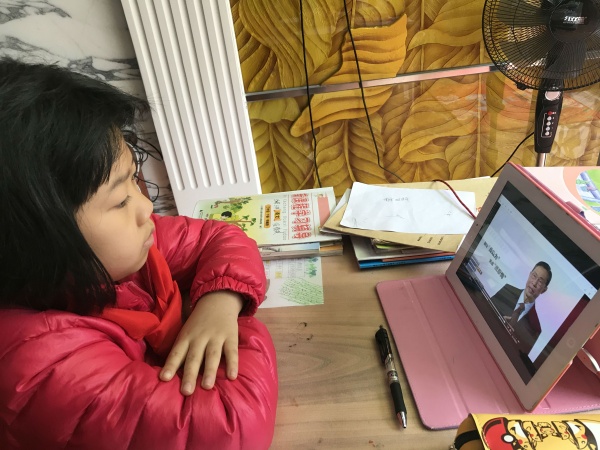 南頭三鑫學校學生認真觀看《我們的心愿》(MV)視頻宣傳片