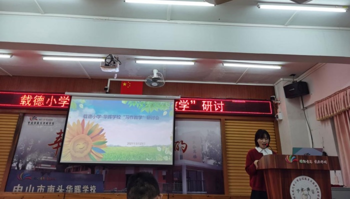 為了適應(yīng)時(shí)代發(fā)展的需求,努力提高教師專業(yè)發(fā)展,全面促進(jìn)學(xué)校教育教學(xué)教研活動(dòng)的深入開(kāi)展,為課堂教學(xué)改革打開(kāi)突破口,中山市南頭華暉學(xué)校采取“走出去、請(qǐng)進(jìn)來(lái)”的措施,積極開(kāi)展校際教學(xué)研討交流活動(dòng),力求拓寬渠道,博采眾長(zhǎng),增加學(xué)習(xí)機(jī)會(huì),提升教師專業(yè)素養(yǎng),提高課堂教學(xué)水平。2021年3月23日中山市南頭華暉學(xué)校與三鄉(xiāng)鎮(zhèn)載德小學(xué)開(kāi)展看圖寫(xiě)話、習(xí)作教學(xué)研討活動(dòng)。本次活動(dòng)由中山市語(yǔ)文學(xué)科骨干教師、三鄉(xiāng)鎮(zhèn)載德小學(xué)語(yǔ)文科組長(zhǎng)、“雪菊名師工作室”成員曾艷華老師帶隊(duì)的三鄉(xiāng)鎮(zhèn)載德小學(xué)語(yǔ)文科組為南頭華暉學(xué)校語(yǔ)文課組送課和培訓(xùn)。南頭華暉學(xué)校部分行政、全體語(yǔ)文教師、三鄉(xiāng)鎮(zhèn)教指中心王建國(guó)主任、載德小學(xué)班本作文課題團(tuán)隊(duì)參加了本次活動(dòng)。這次研討活動(dòng)的主要內(nèi)容分為課例觀摩和培訓(xùn)交流。