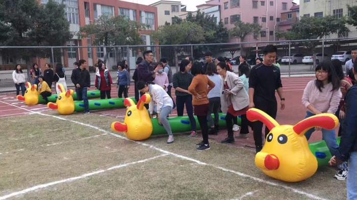 此次趣味運動會在內容和形式上進行了創新,突出了項目的趣味性、娛樂性和觀賞性,在工會委員的精心策劃下共設立“夾球奔跑” 、“袋鼠奔奔跳” 、“跳兔兔蟲”、“眾星捧月”四個項目的角逐。在運動場上,老師們都全力投入,力爭第一。賽場上,加油聲不斷,場上充滿老師們的歡聲笑語,每個人的臉上都洋溢著快樂的微笑。