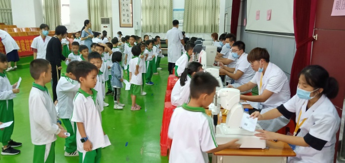 上午八點三十分,由市保健所王麗梅醫生帶領的13人組成的視力檢測醫療小組在鎮教育和體育事務中心衛生專干潘金洪、校長吳博事的陪同下來到學校階梯室,開展對學校276名學生的視力檢測工作。
