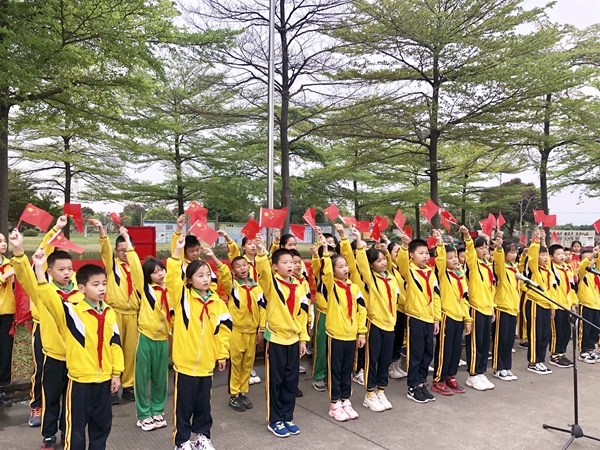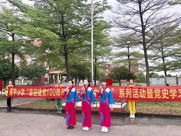 隨后,六年級(jí)學(xué)生黃婉鈺、何欣婷、黃思婷獻(xiàn)唱《迪茵之歌》,歌響“金三角、福三角、綠三角”,獻(xiàn)禮中國(guó)共產(chǎn)黨百年華誕,謳歌黨的崇高和偉大。