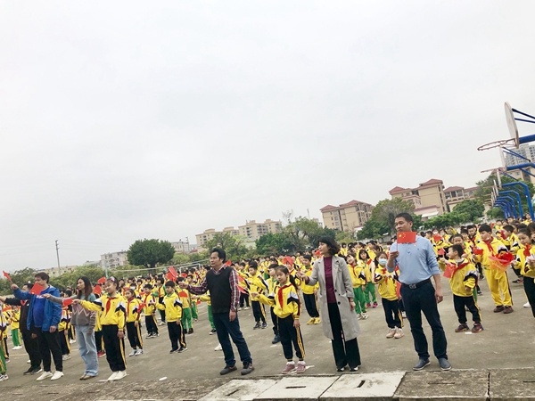 緊接著,在五(1)班同學(xué)的帶領(lǐng)下,在一首慷慨激昂的《沒(méi)有共產(chǎn)黨就沒(méi)有新中國(guó)》唱出了對(duì)黨的炙熱情懷,全體師生們深深沉浸在著激情澎湃的旋律聲中,不由自主地?fù)]動(dòng)手中國(guó)旗,大聲跟唱,把對(duì)黨和祖國(guó)的熱愛(ài)之情傳遍心間、涌動(dòng)全身,振奮歌聲響徹整個(gè)高平小學(xué),把啟動(dòng)儀式推向了高潮。