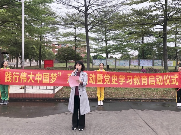 伴隨著雄壯的國(guó)歌聲和冉冉升起的五星紅旗,啟動(dòng)儀式拉開(kāi)了帷幕。首先,高平小學(xué)梁雪文副校長(zhǎng)滿(mǎn)懷激情地與全體師生回顧黨的發(fā)展歷程,宣讀高平小學(xué)“喜迎建黨100周年,踐行偉大中國(guó)夢(mèng)”系列活動(dòng)方案,希望同學(xué)們?cè)趯W(xué)黨史、唱紅歌、看紅色電影、誦讀比賽等系列活動(dòng)中深入了解中華民族實(shí)現(xiàn)偉大復(fù)興的百年奮斗歷程。她號(hào)召學(xué)生要繼承和發(fā)揚(yáng)黨的光榮傳統(tǒng)和優(yōu)良作風(fēng),回望過(guò)往的奮斗路,眺望前方的奮進(jìn)路,把黨的歷史學(xué)習(xí)好、總結(jié)好,把黨的成功經(jīng)驗(yàn)傳承好、發(fā)揚(yáng)好,成為新時(shí)代好少年。