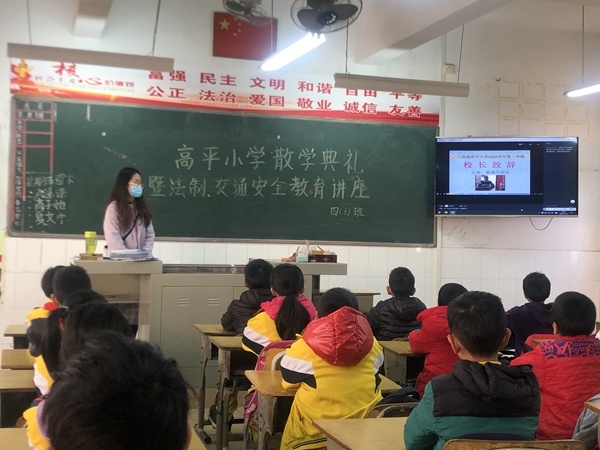 緊接著,高平小學梁雪文副校長從疫情防控、交通安全、居家生活安全、飲食安全等方面對學生提出具體要求。同時,希望本校學子在這個假期中能充分利用“學習強國”學習平臺不斷增長見聞、拓寬知識面,度過一個安全、快樂、有意義的寒假。